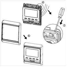След свързване на проводниците, термостатът се монтира върху конзолата. Капакът и рамката се поставят отново.